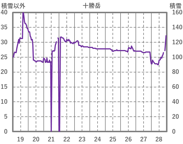 | 日 | 時 | 気温 | 降水 | 風向/風速 | 日照 | 積雪 | 降雪 |