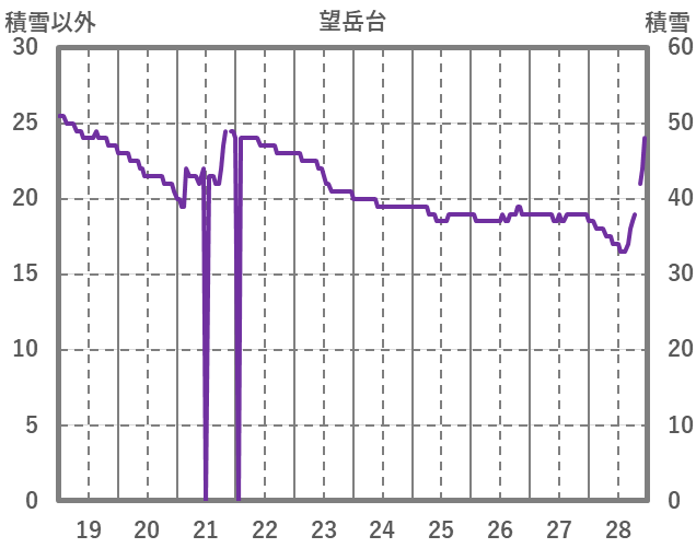 | 日 | 時 | 気温 | 降水 | 風向/風速 | 日照 | 積雪 | 降雪 |