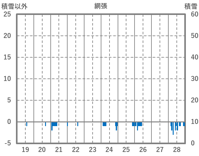 | 日 | 時 | 気温 | 降水 | 風向/風速 | 日照 | 積雪 | 降雪 |