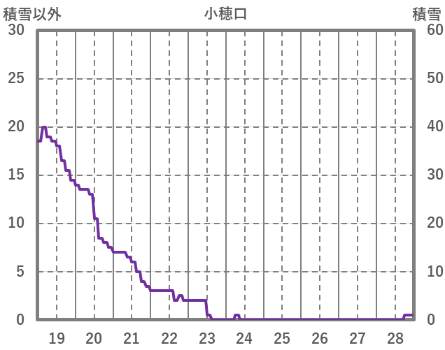 | 日 | 時 | 気温 | 降水 | 風向/風速 | 日照 | 積雪 | 降雪 |