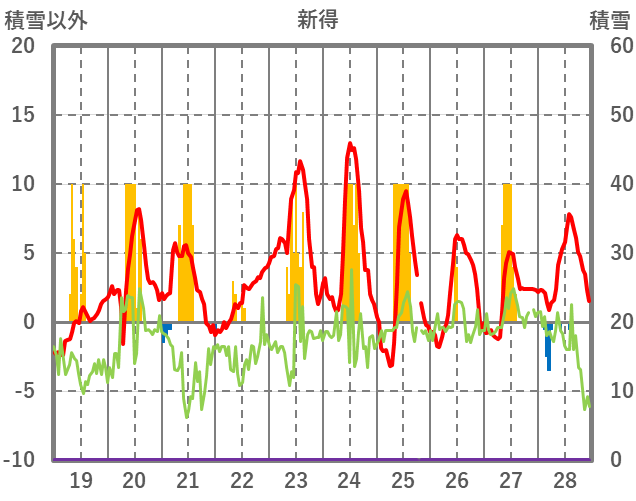 | 日 | 時 | 気温 | 降水 | 風向/風速 | 日照 | 積雪 | 降雪 |
