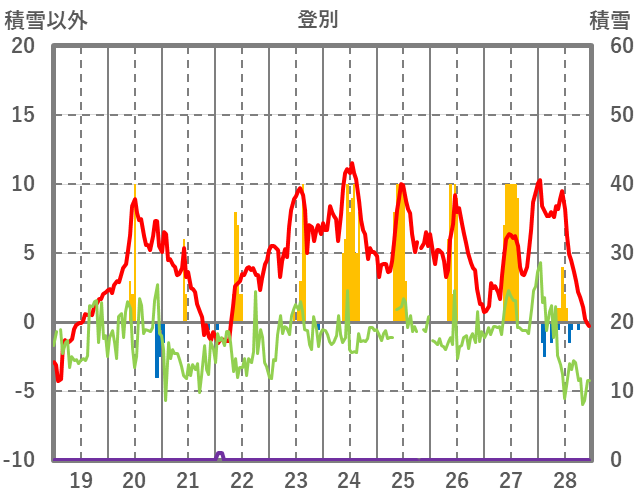| 日 | 時 | 気温 | 降水 | 風向/風速 | 日照 | 積雪 | 降雪 |