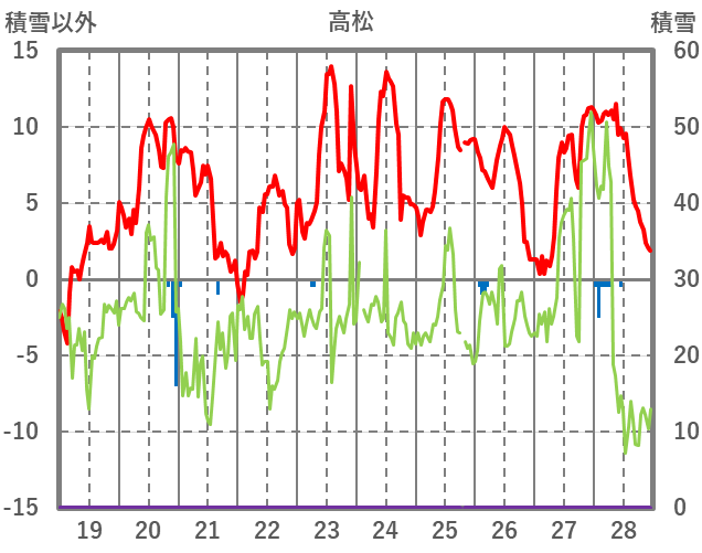 | 日 | 時 | 気温 | 降水 | 風向/風速 | 日照 | 積雪 | 降雪 |