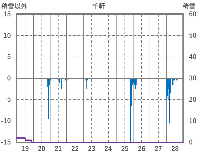 | 日 | 時 | 気温 | 降水 | 風向/風速 | 日照 | 積雪 | 降雪 |