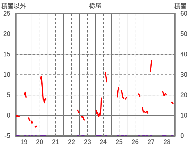 | 日 | 時 | 気温 | 降水 | 風向/風速 | 日照 | 積雪 | 降雪 |