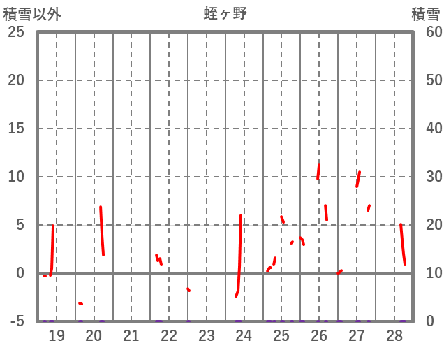 | 日 | 時 | 気温 | 降水 | 風向/風速 | 日照 | 積雪 | 降雪 |