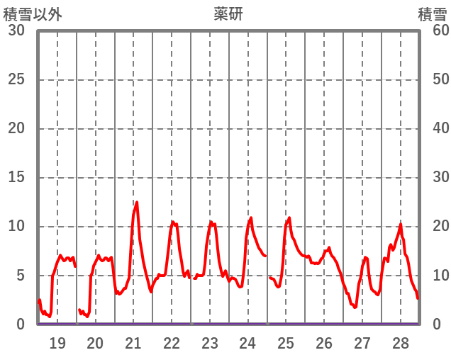| 日 | 時 | 気温 | 降水 | 風向/風速 | 日照 | 積雪 | 降雪 |