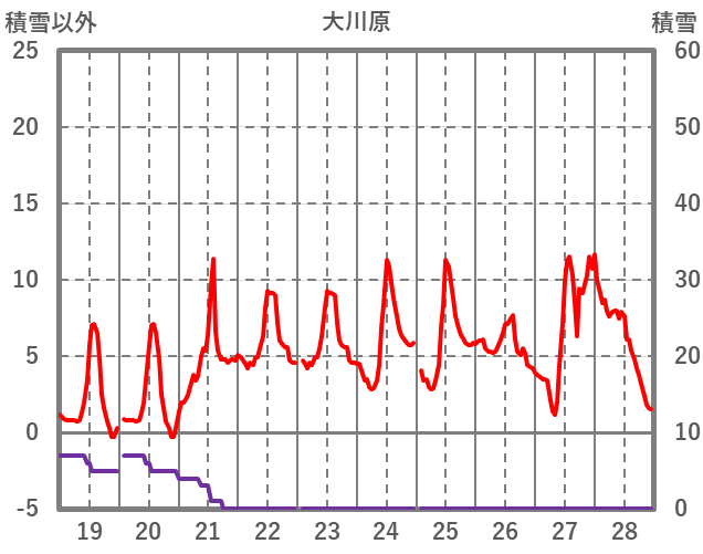 | 日 | 時 | 気温 | 降水 | 風向/風速 | 日照 | 積雪 | 降雪 |