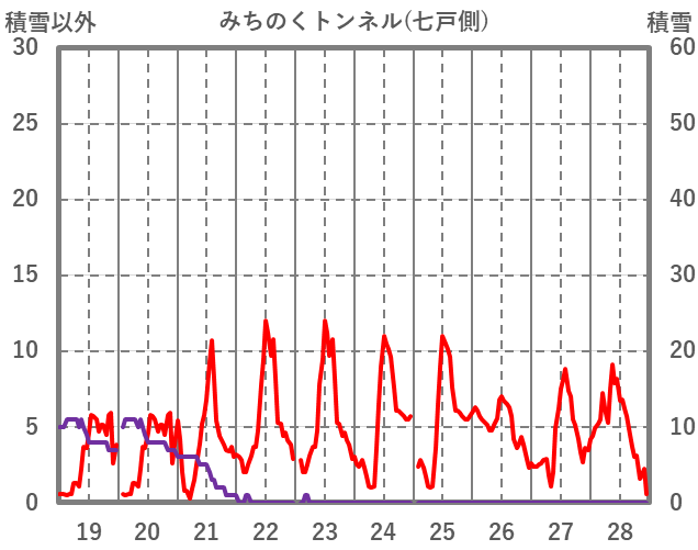 | 日 | 時 | 気温 | 降水 | 風向/風速 | 日照 | 積雪 | 降雪 |