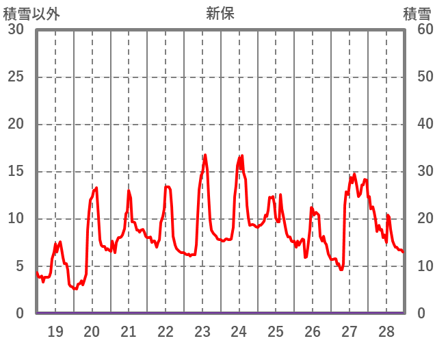 | 日 | 時 | 気温 | 降水 | 風向/風速 | 日照 | 積雪 | 降雪 |