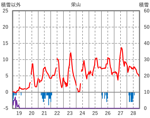 | 日 | 時 | 気温 | 降水 | 風向/風速 | 日照 | 積雪 | 降雪 |