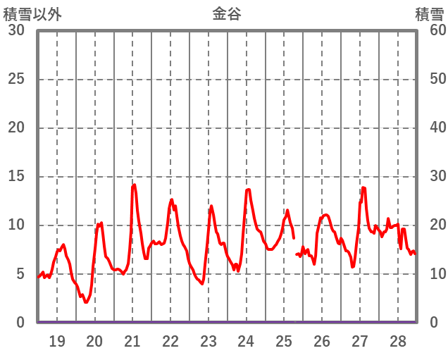| 日 | 時 | 気温 | 降水 | 風向/風速 | 日照 | 積雪 | 降雪 |