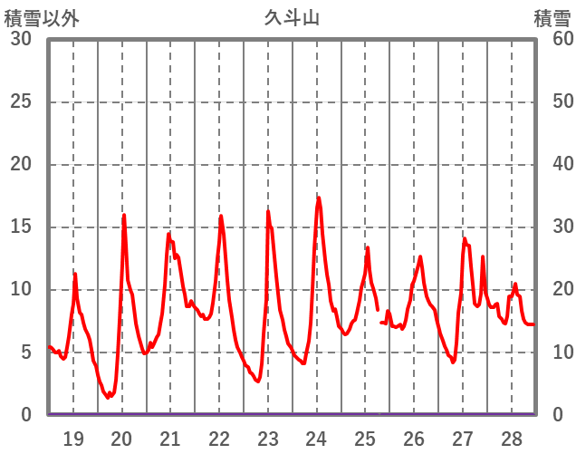 | 日 | 時 | 気温 | 降水 | 風向/風速 | 日照 | 積雪 | 降雪 |