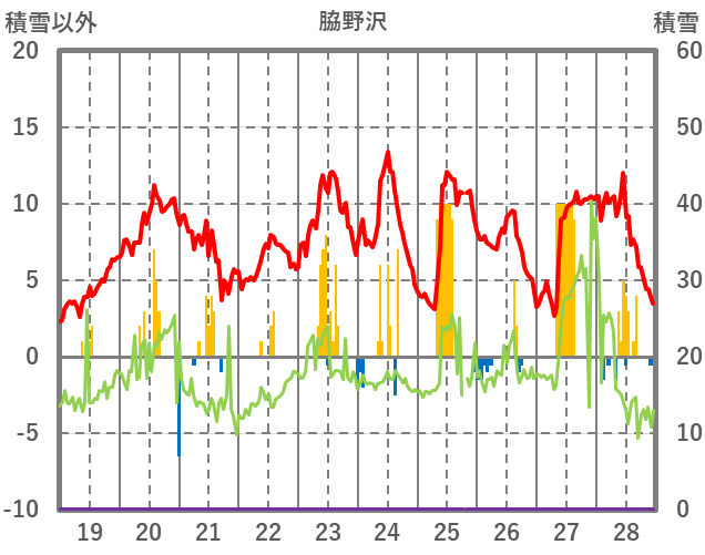 | 日 | 時 | 気温 | 降水 | 風向/風速 | 日照 | 積雪 | 降雪 |