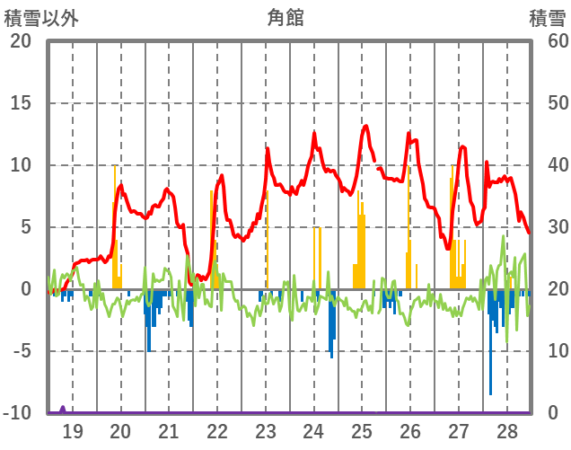 | 日 | 時 | 気温 | 降水 | 風向/風速 | 日照 | 積雪 | 降雪 |