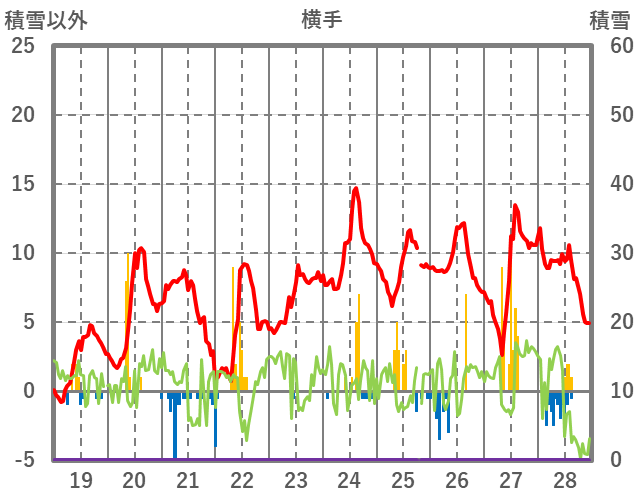 | 日 | 時 | 気温 | 降水 | 風向/風速 | 日照 | 積雪 | 降雪 |