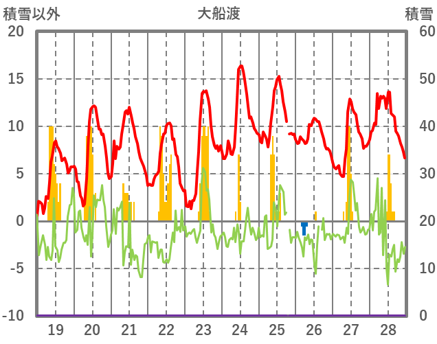 | 日 | 時 | 気温 | 降水 | 風向/風速 | 日照 | 積雪 | 降雪 |