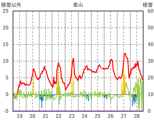 | 日 | 時 | 気温 | 降水 | 風向/風速 | 日照 | 積雪 | 降雪 |
