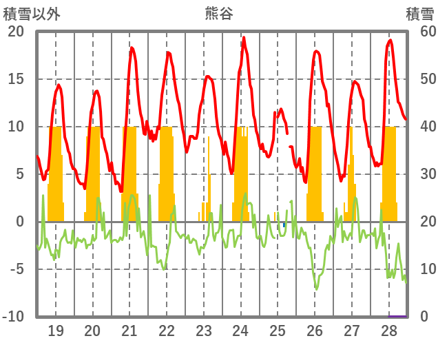 | 日 | 時 | 気温 | 降水 | 風向/風速 | 日照 | 積雪 | 降雪 |