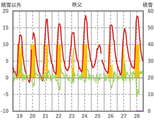 | 日 | 時 | 気温 | 降水 | 風向/風速 | 日照 | 積雪 | 降雪 |