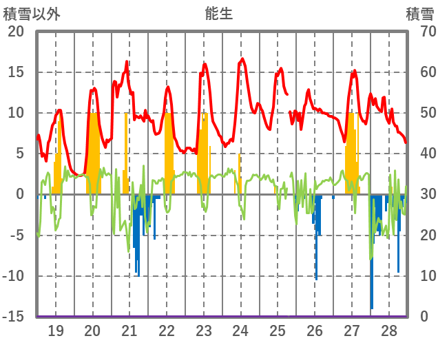 | 日 | 時 | 気温 | 降水 | 風向/風速 | 日照 | 積雪 | 降雪 |