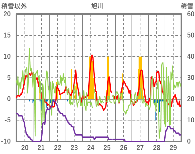 | 日 | 時 | 気温 | 降水 | 風向/風速 | 日照 | 積雪 | 降雪 |