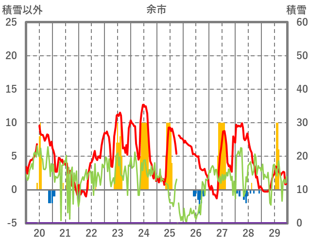| 日 | 時 | 気温 | 降水 | 風向/風速 | 日照 | 積雪 | 降雪 |