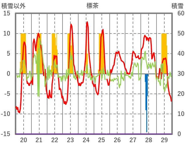| 日 | 時 | 気温 | 降水 | 風向/風速 | 日照 | 積雪 | 降雪 |