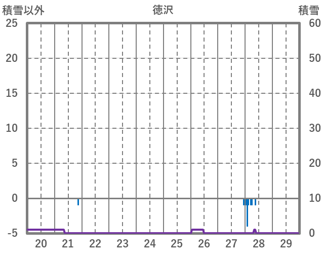 | 日 | 時 | 気温 | 降水 | 風向/風速 | 日照 | 積雪 | 降雪 |