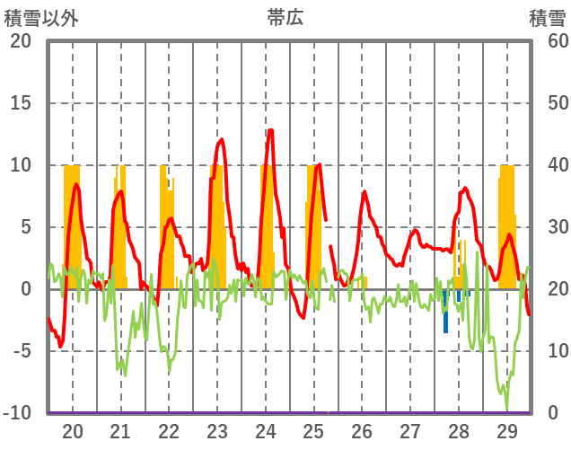 | 日 | 時 | 気温 | 降水 | 風向/風速 | 日照 | 積雪 | 降雪 |