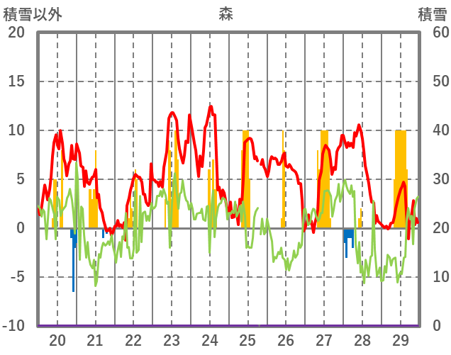 | 日 | 時 | 気温 | 降水 | 風向/風速 | 日照 | 積雪 | 降雪 |