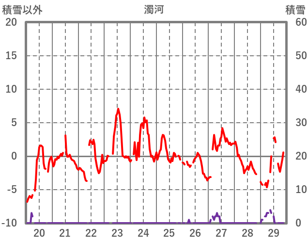 | 日 | 時 | 気温 | 降水 | 風向/風速 | 日照 | 積雪 | 降雪 |