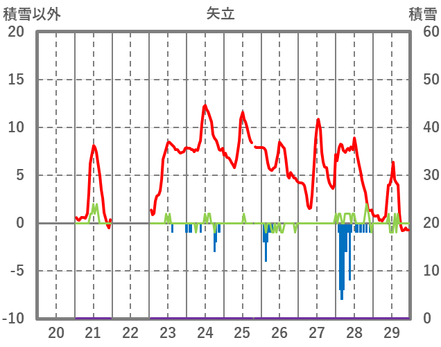| 日 | 時 | 気温 | 降水 | 風向/風速 | 日照 | 積雪 | 降雪 |