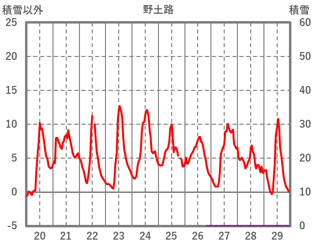 | 日 | 時 | 気温 | 降水 | 風向/風速 | 日照 | 積雪 | 降雪 |