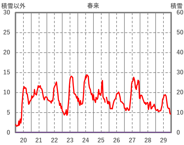 | 日 | 時 | 気温 | 降水 | 風向/風速 | 日照 | 積雪 | 降雪 |