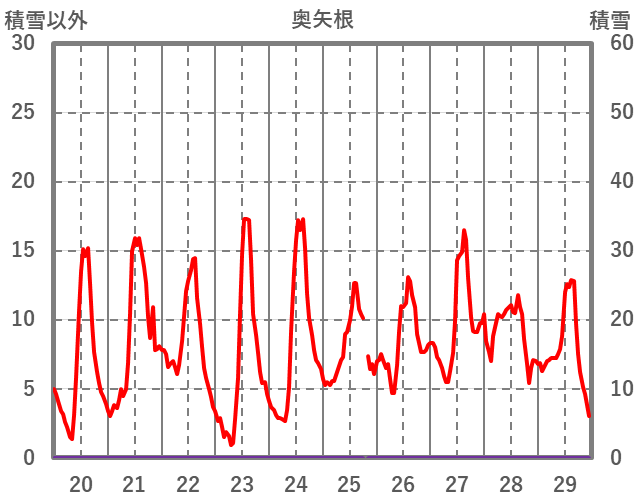 | 日 | 時 | 気温 | 降水 | 風向/風速 | 日照 | 積雪 | 降雪 |