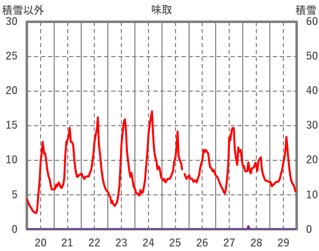 | 日 | 時 | 気温 | 降水 | 風向/風速 | 日照 | 積雪 | 降雪 |