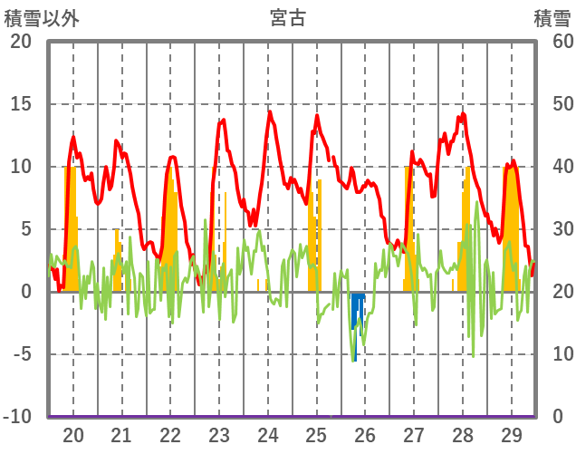 | 日 | 時 | 気温 | 降水 | 風向/風速 | 日照 | 積雪 | 降雪 |