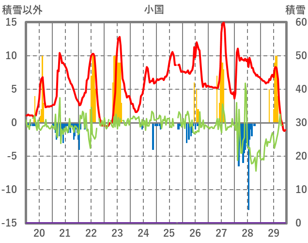 | 日 | 時 | 気温 | 降水 | 風向/風速 | 日照 | 積雪 | 降雪 |