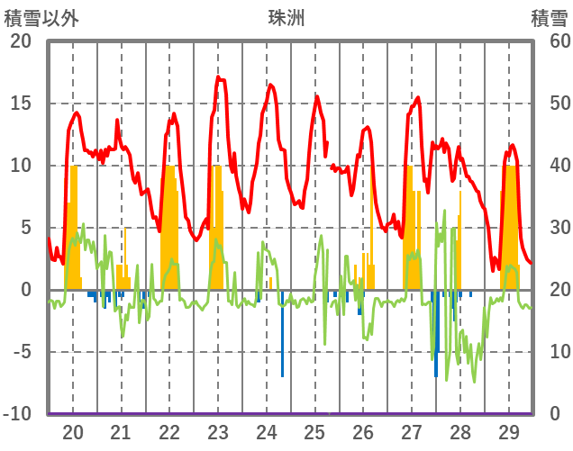 | 日 | 時 | 気温 | 降水 | 風向/風速 | 日照 | 積雪 | 降雪 |