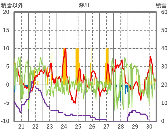 | 日 | 時 | 気温 | 降水 | 風向/風速 | 日照 | 積雪 | 降雪 |