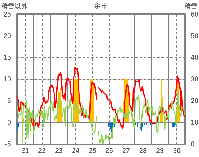 | 日 | 時 | 気温 | 降水 | 風向/風速 | 日照 | 積雪 | 降雪 |