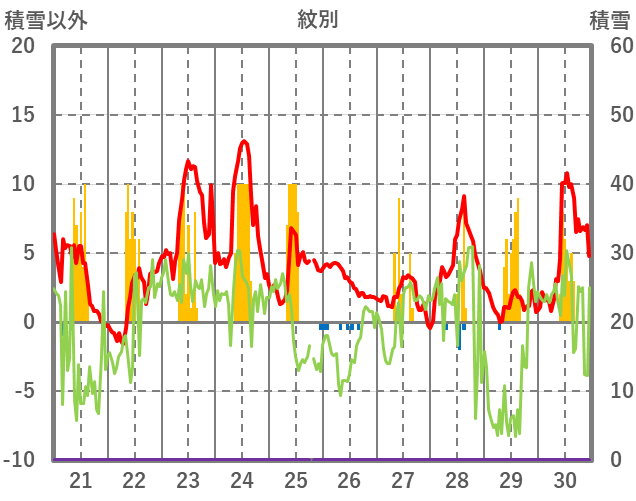 | 日 | 時 | 気温 | 降水 | 風向/風速 | 日照 | 積雪 | 降雪 |