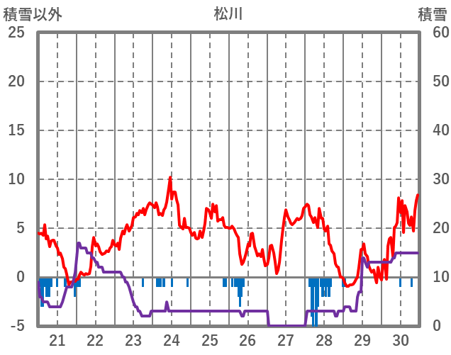 | 日 | 時 | 気温 | 降水 | 風向/風速 | 日照 | 積雪 | 降雪 |