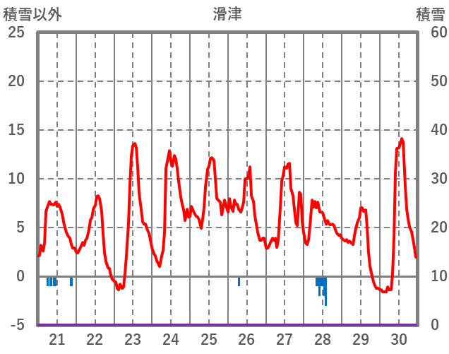 | 日 | 時 | 気温 | 降水 | 風向/風速 | 日照 | 積雪 | 降雪 |