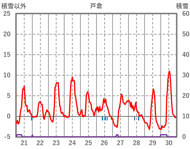 | 日 | 時 | 気温 | 降水 | 風向/風速 | 日照 | 積雪 | 降雪 |