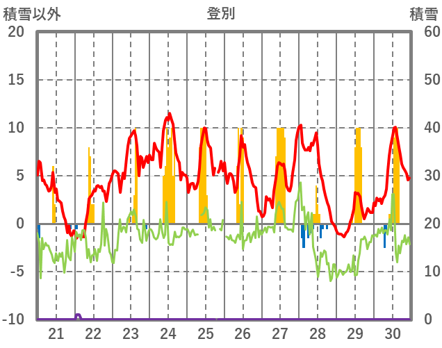 | 日 | 時 | 気温 | 降水 | 風向/風速 | 日照 | 積雪 | 降雪 |