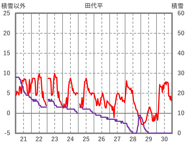 | 日 | 時 | 気温 | 降水 | 風向/風速 | 日照 | 積雪 | 降雪 |