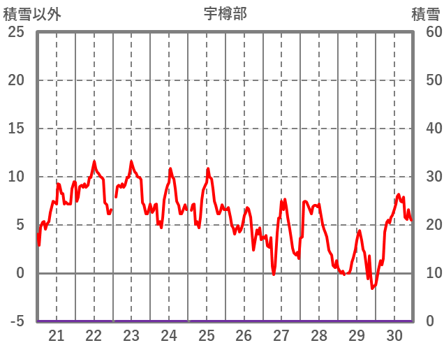 | 日 | 時 | 気温 | 降水 | 風向/風速 | 日照 | 積雪 | 降雪 |