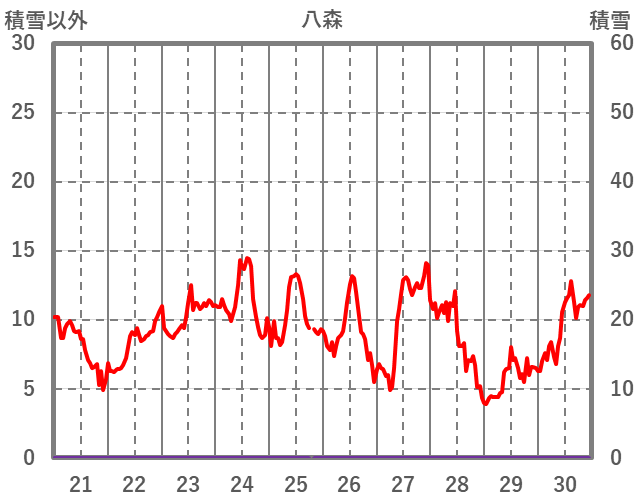 | 日 | 時 | 気温 | 降水 | 風向/風速 | 日照 | 積雪 | 降雪 |